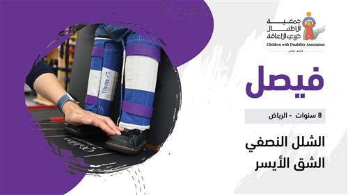 فيصل يبلغ من العمر (8 سنوات) ويعاني من الشلل النصفي الشق الأيسر، ويحتاج الى ٥٠ جلسة تأهيلية تشمل: جلسات علاج طبيعي وجلسات علاج وظيفي، بدعمكم نستطيع تحقيق حلم فيصل.