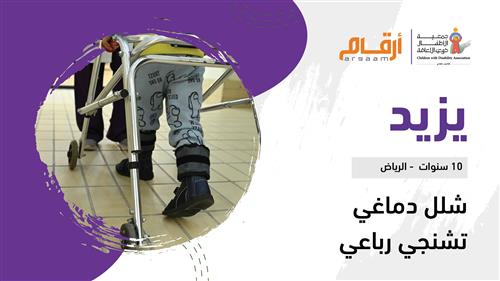 يزيد يبلغ من العمر (10 سنوات) ويعاني من شلل دماغي تشنجي رباعي ، ويحتاج إلى 50 جلسة تأهيلية تشمل:جلسات علاج طبيعي وجلسات علاج وظيفي، بدعمكم نستطيع تحقيق حلم يزيد.