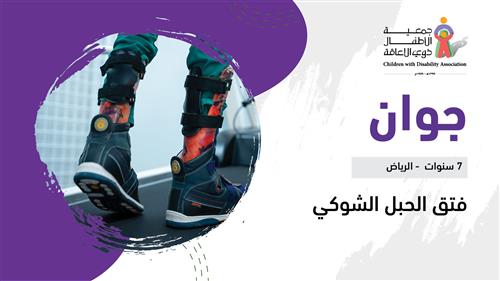 جوان تبلغ من العمر (7) سنوات وتعاني من فتق الحبل الشوكي، وتحتاج إلى 50 جلسة تأهيلية تشمل:جلسات علاج طبيعي وجلسات علاج وظيفي، بدعمكم نستطيع تحقيق حلم جوان.